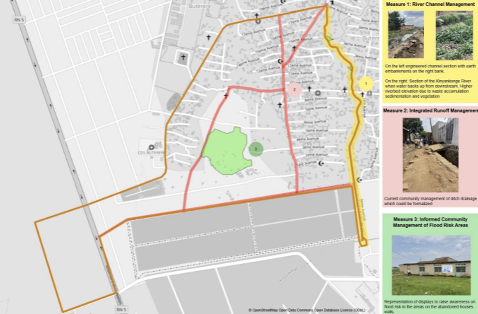 Map developed by JBA to show prioritised community measures for Buterere. (December 2025. Image rights: JBA Global Resilience)
