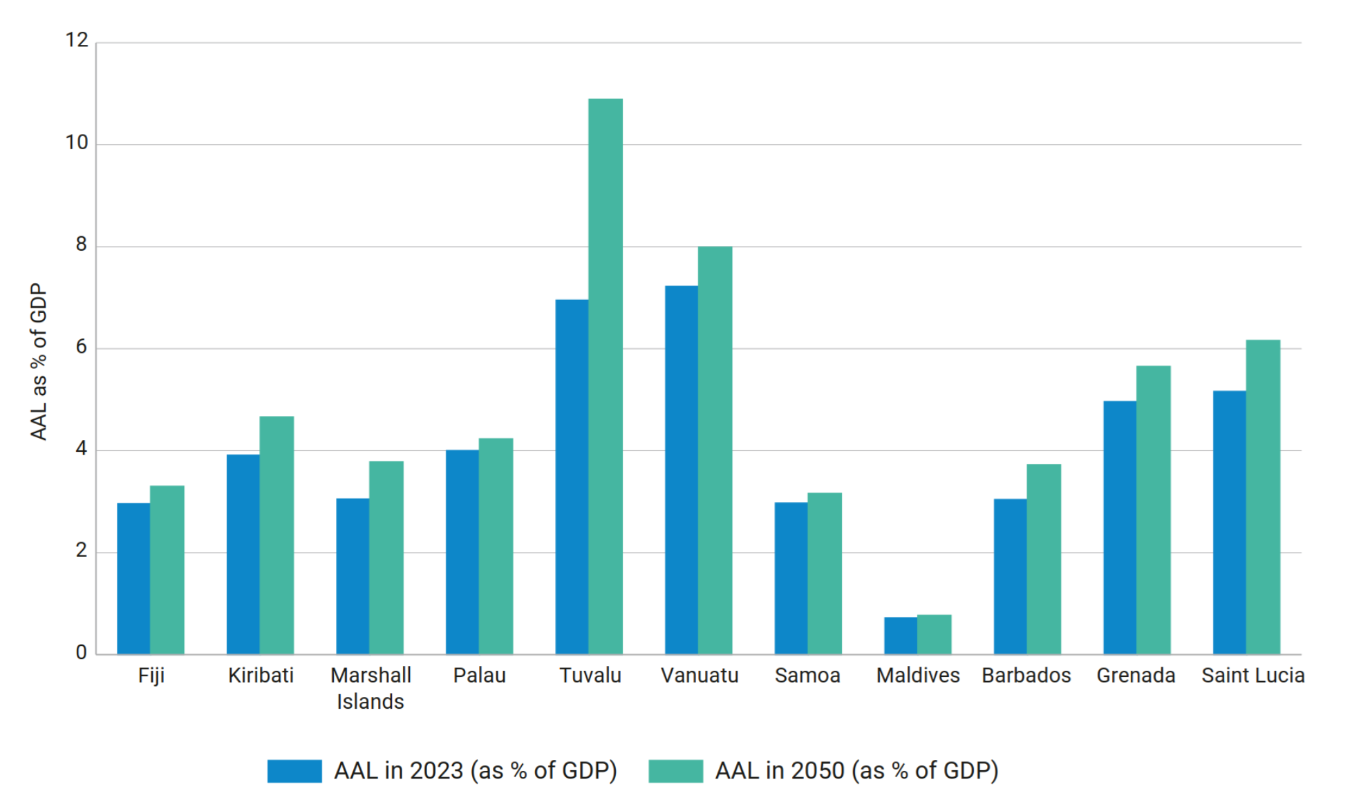 Figure 1: Total Average Annual Loss per Country for 2023 vs 2050 as % of GDP