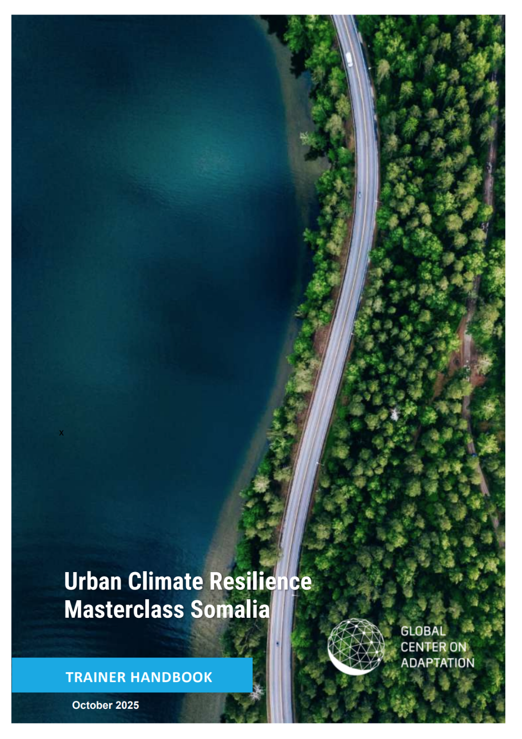 The Global Center on Adaptation (GCA) facilitated the development of an Urban Climate Resilience Masterclass (UCRMC) to build institutional capacity to design and implement climate-resilient urban investments in line with the World Bank’s Urban Resilience Program II (SURP II) project. The development of the masterclass built off previous UCMRCs delivered in Kenya and Bangladesh, and was co-created in close partnership with municipal officials and the World Bank task team to ensure it was tailored to the specific needs of Somalia. The UCRMC Trainer Handbook has been designed for anyone delivering the resilience training and is a support guide that leads the trainer through the material, module by module, and offers guidance for effective facilitation.