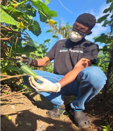Among the many contributors to this effort are young leaders like Febechi Desmond, a member of the GCA CEO Youth Advisory Panel representing Nigeria and an Optimization Technician who works with rural farmers to introduce adaptive crop species and interpret shifting seasonal patterns. Through Green Preserve Africa— the youth-led agribusiness he founded to cultivate climate-resilient crops—he grows cucumber, watermelon, okra, pepper, cassava and other hardy varieties that can withstand irregular rainfall, rising temperatures and increasing pest pressure.